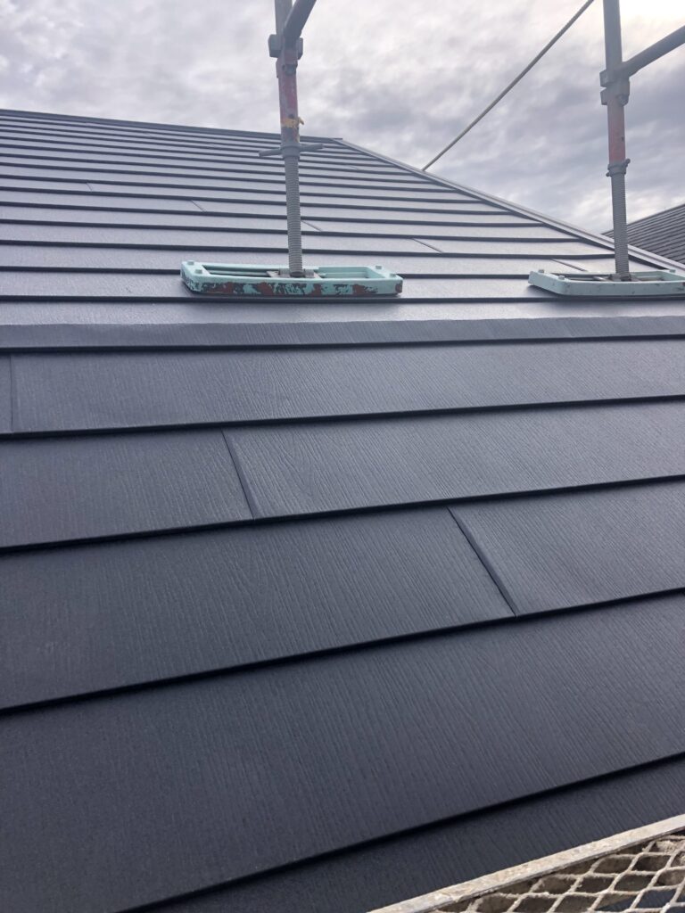 現状は雨漏りもしておりませんのでカバー工法で今の屋根の上にルーフィングを敷き込みガルテクトと言う商品を葺きます。錆びにくい鋼板(超⾼耐久ガルバ)に断熱材もついていますので建物への熱の吸収も少なくなります。この工法で施工すると古いカラーベストのゴミも出ません。(瓦や下地のやりかえが必要な場合はこの限りではありません)