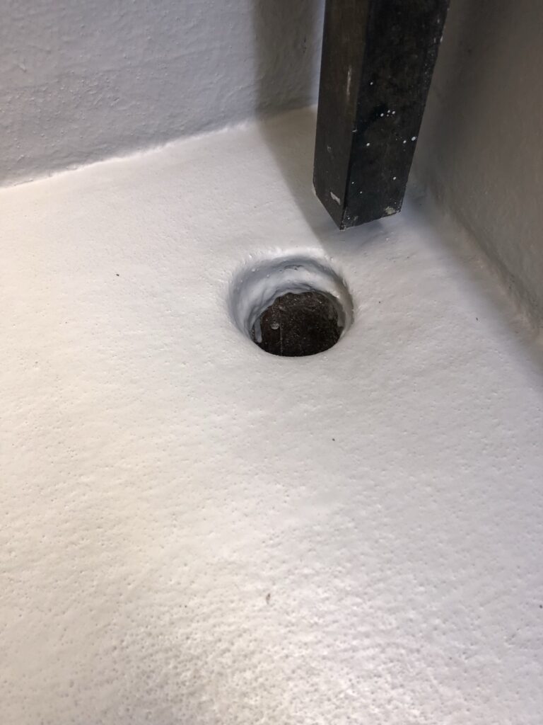 バルコニーの防水工事です。元の防水の工法が何かにもよりますがFRPやコンクリート系の場合は上からFRP防水が良いと思います。排水ドレンのまわりや床部分の表面のひび割れが漏れの原因となりますのでたまにチェックしてみて下さい。写真が仕上がりしかないのですが学校のプールのイメージとなります。キレイになりましたね。コレで安心です。