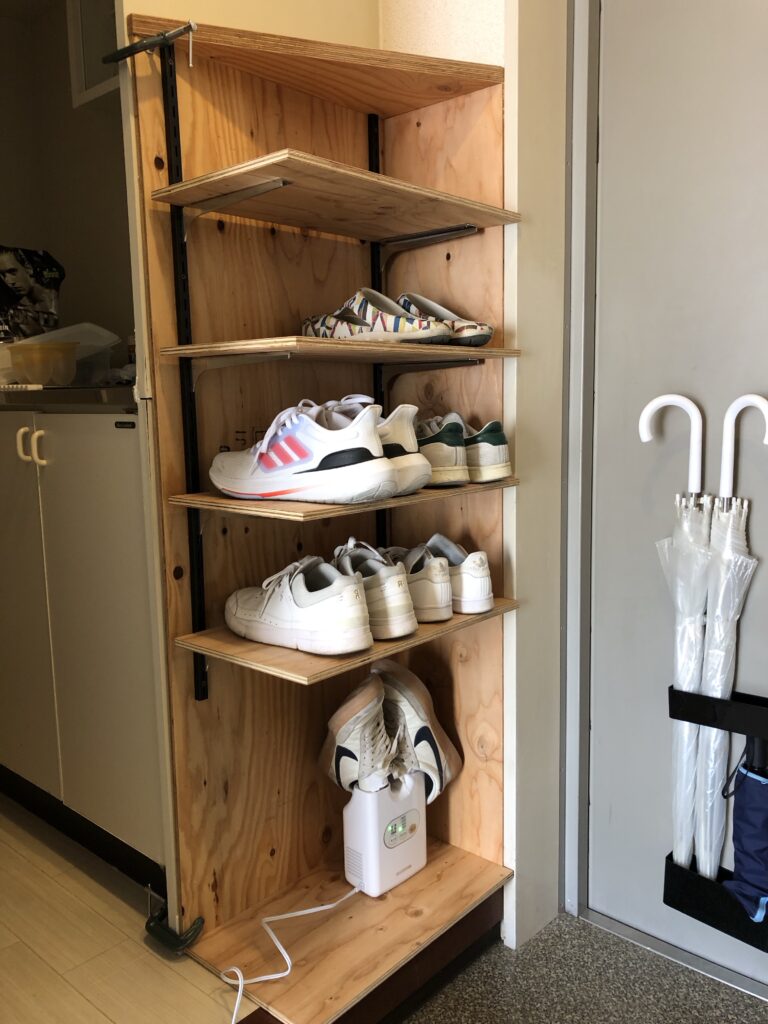 下駄箱がついていませんのでここもスペースを最大に生かして8〜9足はいります。靴乾燥機も利用できます。